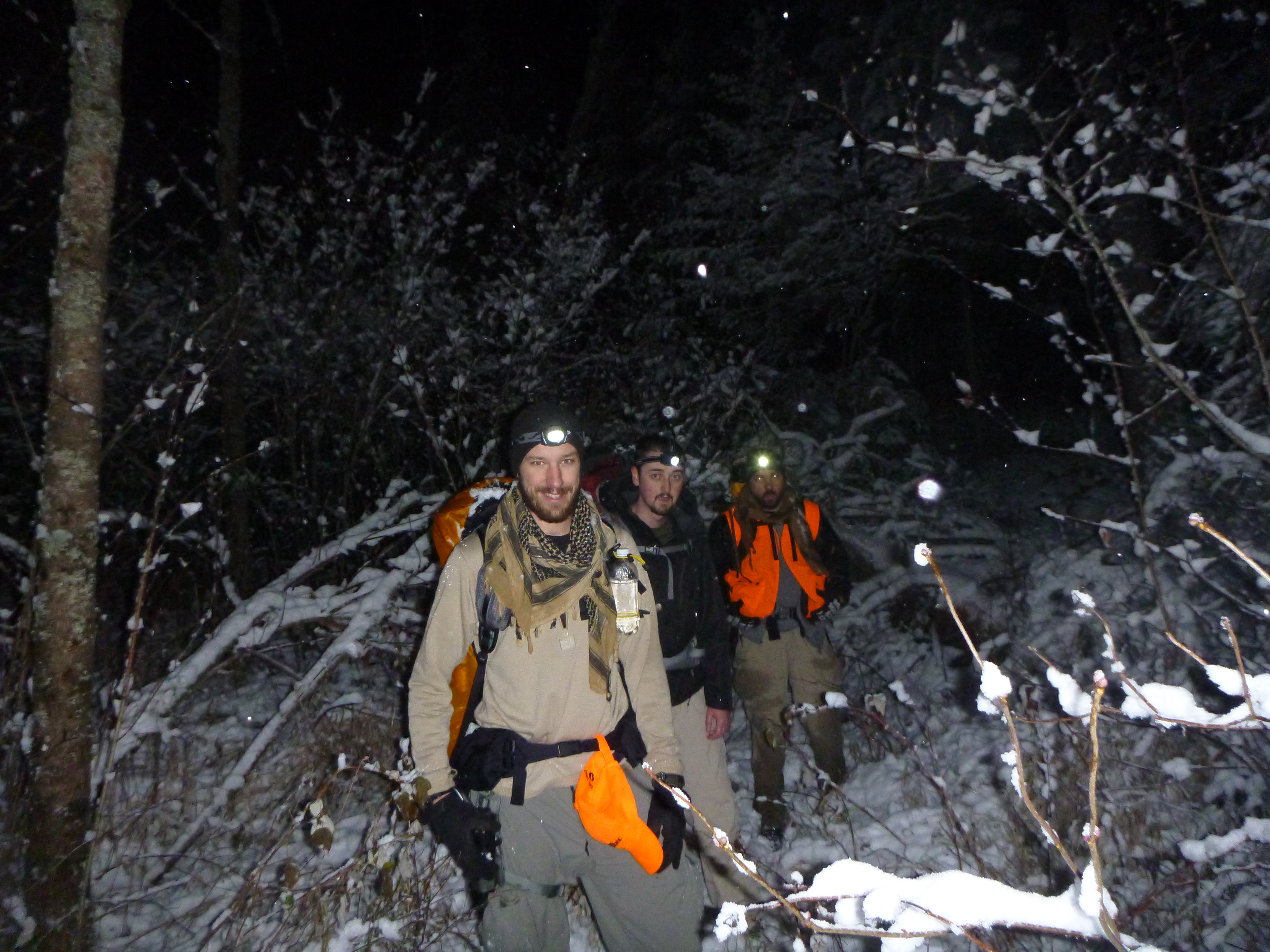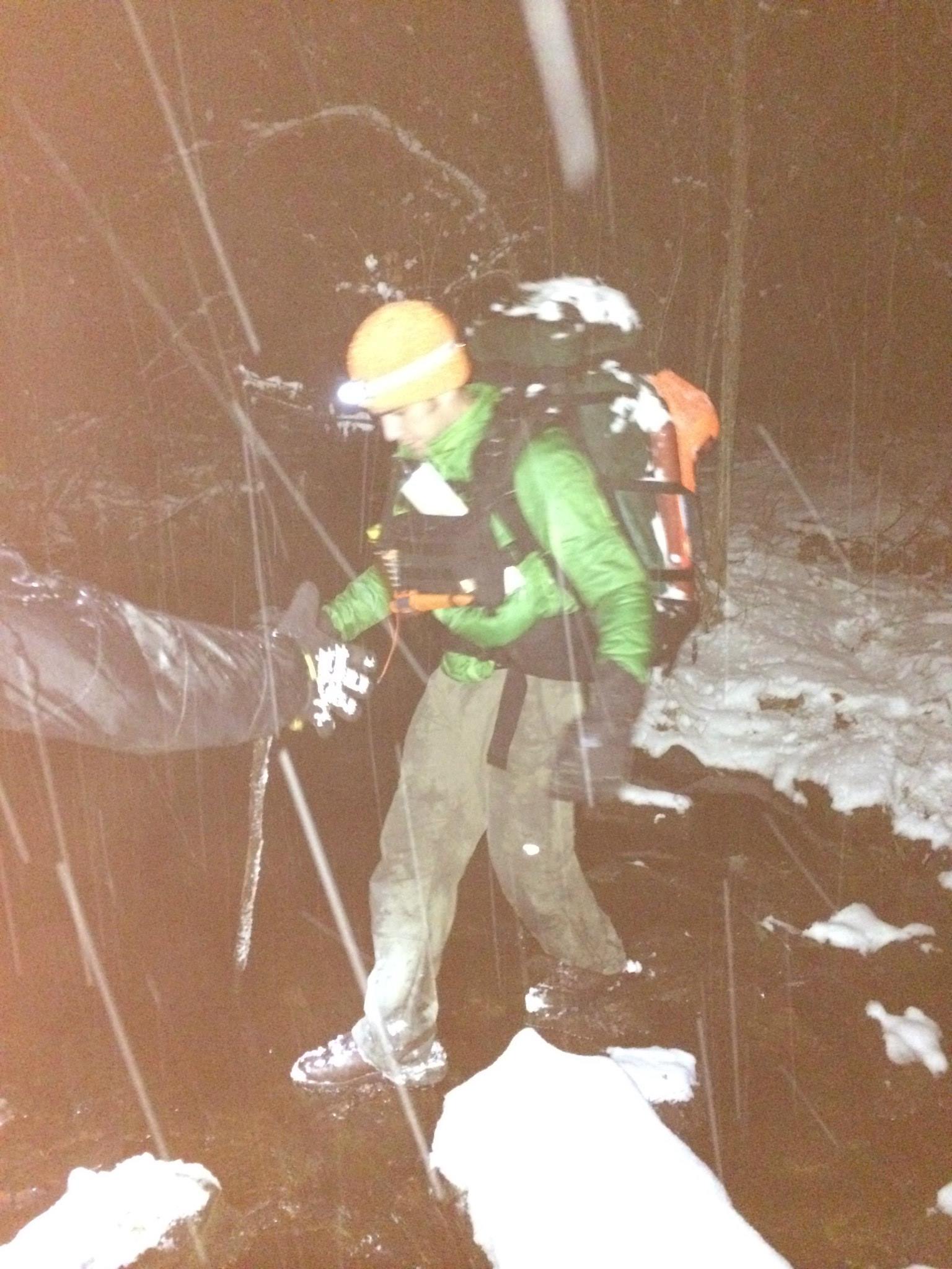 We settled in for the night, hoping dryer clothes, tents, and sleeping bags would bring warmth and sleep. The day was a lesson in patience, persistence, and adaptability. The group was tired and uncomfortable, but we never broke down. Hiking through this terrain in a wintry mix at night was challenging and awesome. It adds a completely different perspective, both alluring and ominous.